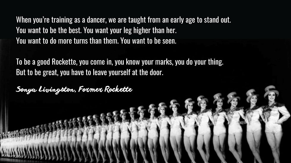 Dedication to workplace and community (the Rockettes have petitioned for better performer wages and helped save Radio City Music Hall)